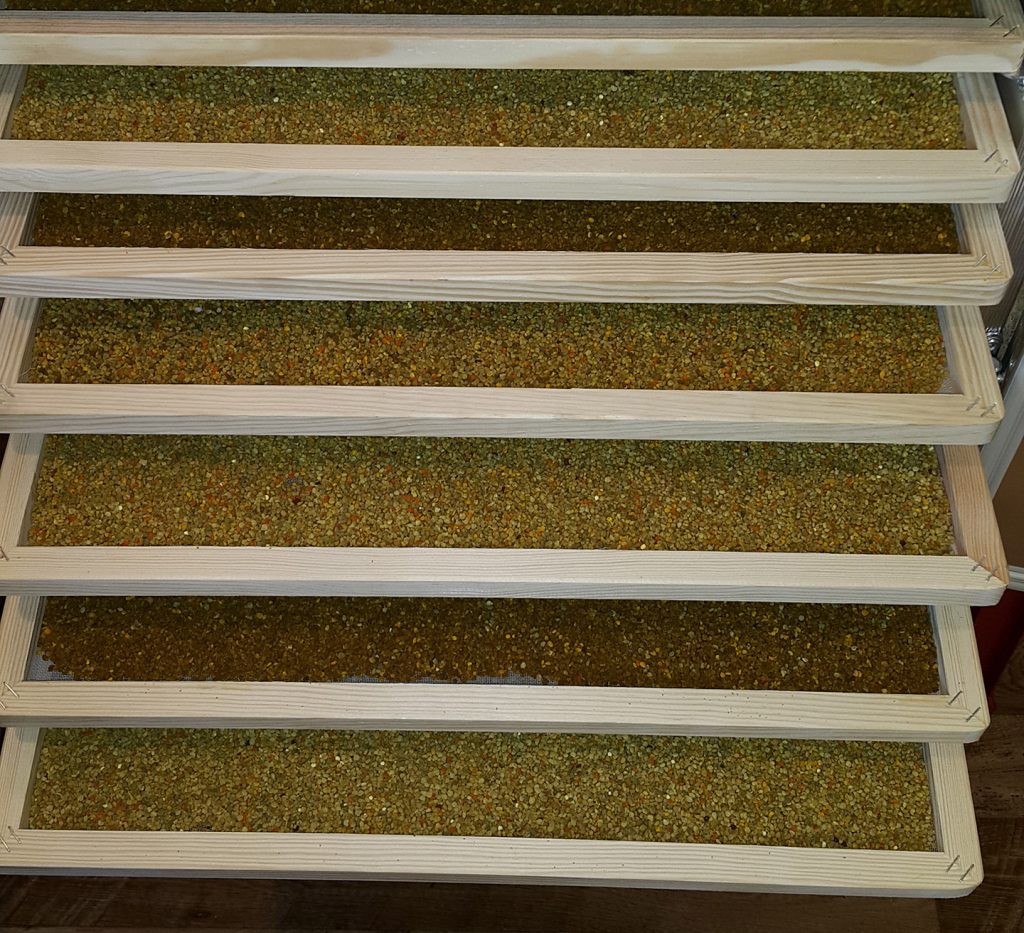 Z biegiem czasu zacząłem robić odkłady pszczele i hodować matki, było to dla mnie nowe wyzwanie. W 2016 roku odważyłem się na nowy krok i postanowiłem spróbować swoich sił w poławianiu pyłku i był to super pomysł. W obecnym czasie Pasiekę rozwijam w kierunku jak najbardziej efektywnego pozyskiwania pyłku pszczelego. Pozyskuję też propolis, pierzgę, na zamówienie nauczyłem się wytwarzać maść propolisową i oczywiście niezastąpione świeczki z wosku. Nie zapominajmy o Miodku! Na terenach w których znajduje się moja pasieka występuje miód lipowy, mniszkowy nawłociowy, spadziowy, akacjowy i leśny.